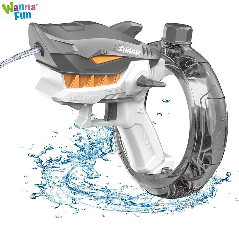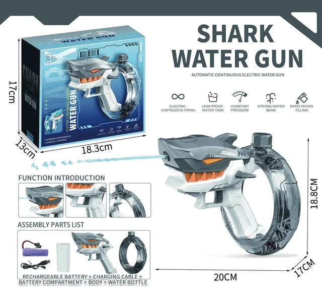 🔹 Diseño único y creativo: La pistola tiene forma de tiburón, con una mandíbula móvil que "muerde" de manera divertida. 🦈